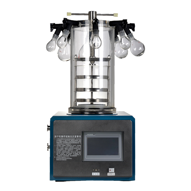 实验型真空冷冻干燥机广泛适用大学实验室-生物科研-西林瓶等少量物料的科学研究。